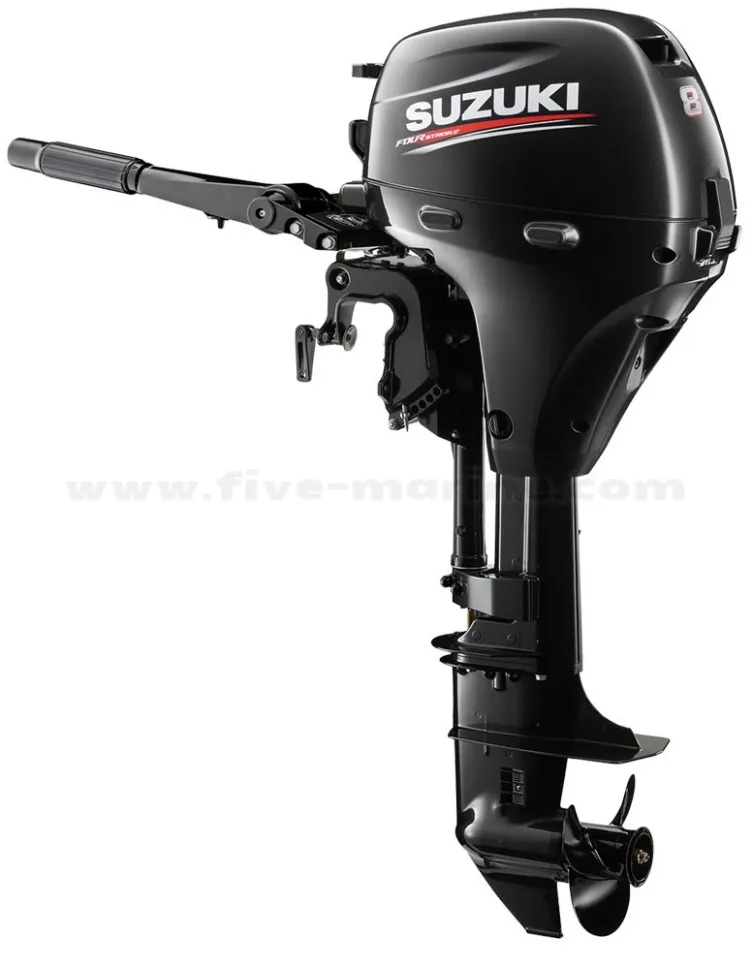 The Suzuki DF8A is an 8 HP outboard engineered to offer a step up in power from the ultra-portable class while remaining compact and user-friendly. At its core is a 208cc two-cylinder four-stroke engine that provides quiet, smooth, and fuel-efficient performance. This model strikes a balance: it’s light enough (~40 kg) to transport and install without a hoist, yet it delivers a solid 8 HP – perfect for jon boats, small RIB inflatables, or as auxiliary power for sailboats and mid-sized fishing boats.